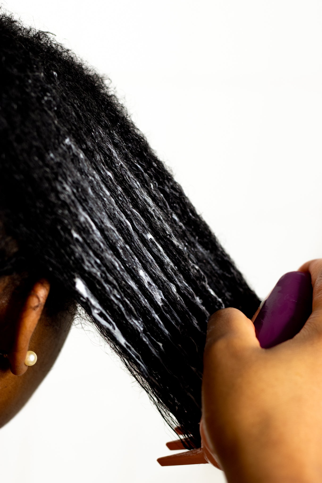 3. Démêlez : Le rouleau tourne et applique le produit contenu dans le peigne sur les cheveux permettant ainsi un démêlage sans effort.